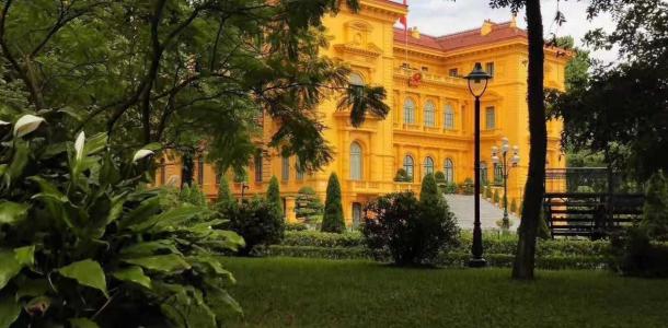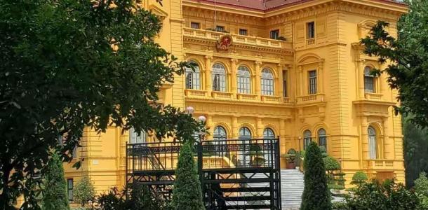 河内主席府位于巴亭广场附近,离胡志明墓不远,其主体建筑是一栋气派的黄色三层大楼,原为法属印度支那总督府,建于1900-1906年间,目前主要用于举行越南政府会议。这栋纯粹欧洲风格的建筑有着铁艺大门、古典列柱及壮观的楼梯,还有