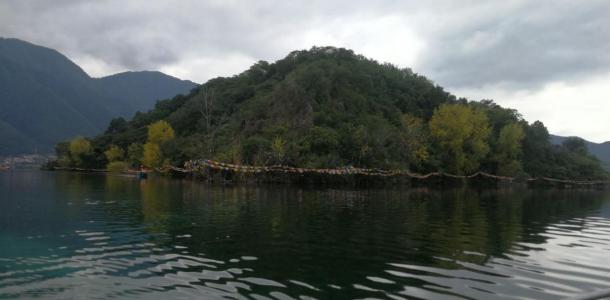 里格半岛位于泸沽湖的北侧,东西南三面环水,北面是与陆地接壤的一条小路,只有2米宽,走完小路就是一个白色的转山包,当地居民会从转山包的左侧进岛,然后会从转山包的右侧出岛,这样走就相当于绕着转山包转了一圈。早晨的里格半