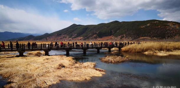 走婚桥位于泸沽湖东侧,横跨在芦苇飘荡的草海之上,是泸沽湖周围的一处知名景观。这里的摩梭族奉行“男不娶,女不嫁”的走婚习俗,而走婚时男子都会经过走婚桥去往女方家里,因此这座桥又称“鹊桥”。走婚桥长约300米,两侧是生长