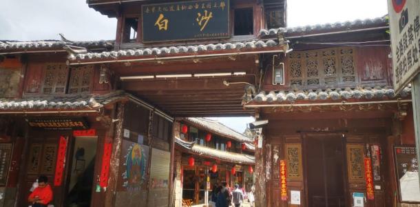 白沙古镇位于丽江古城北约十里处,北临玉龙雪山,南至龙泉,西依芝山。作为木氏土司家族的发源地,木氏家族在白沙积累了规划城镇的经验,是世界文化遗产“丽江古城”的组成部分之一,镇上明清时期的“白沙壁画”更是珍贵无比,世