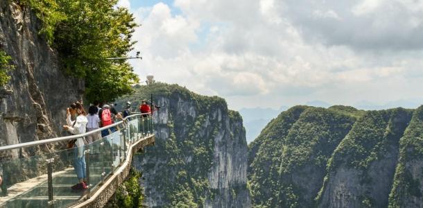 还有惊险刺激的【盘龙崖玻璃栈道】玻璃栈道是张家界天门山景区继悬于峭壁之上的鬼谷栈道、凭空伸出的玻璃眺望台、横跨峡谷的木质吊桥后打造的又一试胆力作。
