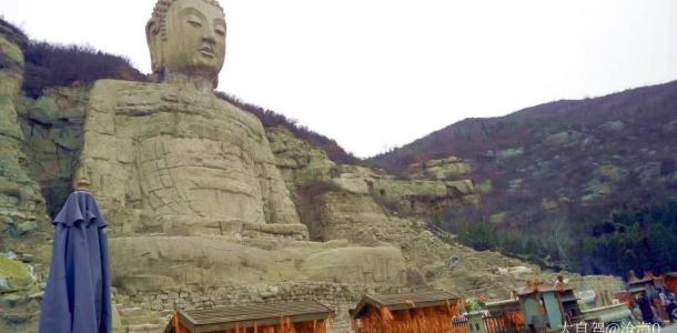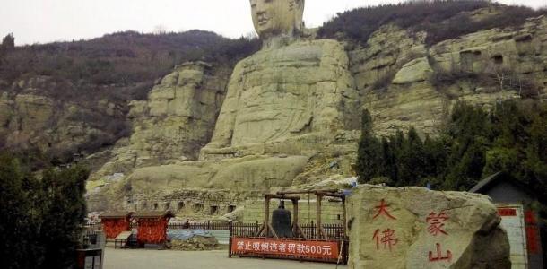 西山大佛,又名蒙山大佛,坐落于蒙山北峰之阳,南向,依山凿制,由于年久风雨剥蚀,岩石表层风化严重,况其外露高大的胸颈部剥落之处还长出小树蒿草,失其原有的风采,致人们不知其为当年巍伟的大佛,立于大佛胸下怀间而不知,无