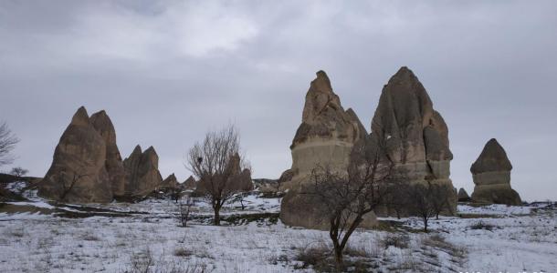 三百万年前,在安纳托尼亚高原上,有两座巨大的火山喷发了,石灰岩,熔岩和火山灰覆盖了这个叫卡帕多细亚的山区,然后是星转斗移,时光流逝,大自然的魔手造就了尤如火星上才有的奇特地貌,这里山峦起伏,沟壑纵横。沟壑与谷涧中,耸立着一片片被称为“仙人烟囱”的岩峰。林林总总的岩峰,冲天而立,其外观如石笋、似烟囱,或高立如锥,或尖耸如塔,或像城堡,或像蘑菇,或像一枚枚巨大的尖钉凸起在山坡,不一而足,蔚为奇观。又被称为怪石堡, 也被联合国收进了自然遗产名录。上午游览格莱梅露天博物馆,下午凯玛克勒地下城和乌奇希萨尔岩壁城堡观看日落美景。
