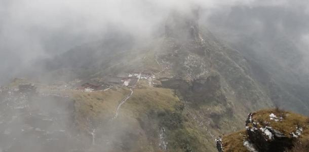 在上山的过程中,我们会乘坐长达3500米的索道(单程30分钟左右),落差达1200米,穿过云雾到达峰顶。上面风光无限,到达金顶过后运气好的话还可以看见漂亮的佛光。