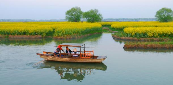 游玩后,我们驱车前往千垛景区游玩,您可以自行乘坐农家小木船,穿梭在千姿百态的湖中小岛中,欣赏一望无际的金灿灿的油菜花花海,令人叹为观止,充分领略到船在水中游,人在花中走的独特感受。