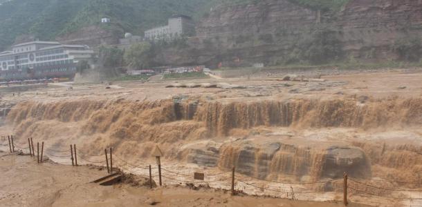 壶口瀑布是黄河中游流经秦晋大峡谷时形成的一个天然瀑布。西临陕西省宜川县,东濒山西省吉县,距陕西省宜川县城40公里,距山西吉县城西南约25公里。瀑布宽达50米,深约50米,最大瀑面3万平方米,是中国仅次于贵州省黄果树瀑布的第二