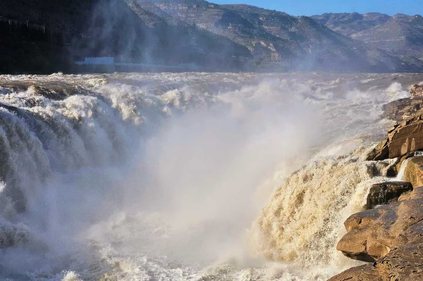 早餐后车队出发,沿黄河公路到达壶口瀑布景区游玩,欣赏冬季壶口瀑布特有的冰挂景观;