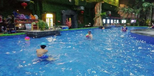 大午温泉水属地热温泉,是地壳深处经过几亿年的蕴酿而成,富含多种对人体有益的矿物质微量元素,如钙、钠、镁、钾、锶等离子。温泉会馆拥有特色泡浴,韩式汗蒸房、溶洞风情池、儿童水寨、游泳区、SPA水疗区、亲亲鱼疗区、玉石浴、