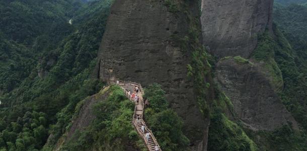 抵达后游览【骆驼峰景区】攀爬骆驼峰 (约2小时),环顾四周到处都是拔地而起的是赤壁黛顶的丹霞群峰和绝壁;本区包括一线天、幽魂洞、蜡烛峰等13处景点。