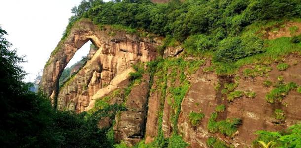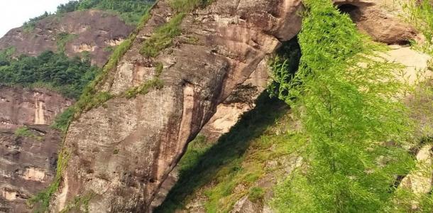 龙虎山高空栈道位于景区内的象鼻山上,高空栈道建在丹霞绝壁之上把一座座山峰串联起来,走在栈道上远山近水,丹霞美景尽入眼帘。沿途岩洞下还有给顾客休息的板凳,颇具人性化。