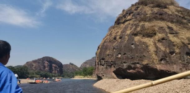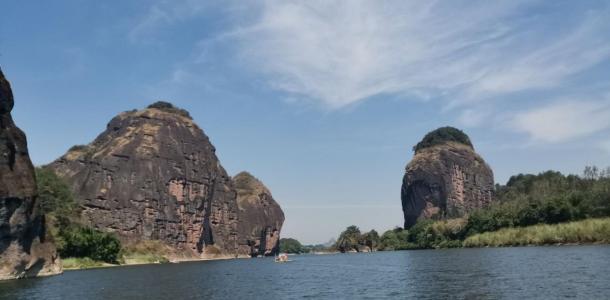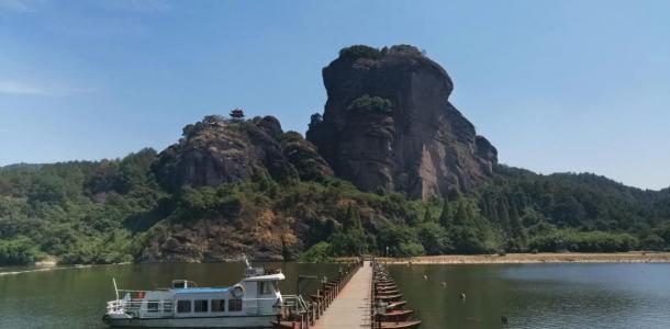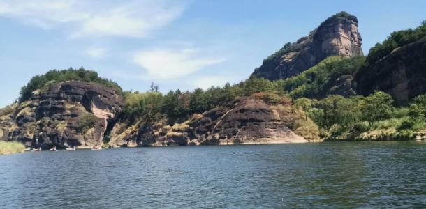 从龙虎山山麓沿泸溪河乘竹筏西行,在七里之内有一百多座山峰,其中最著名的就是被称为“仙水岩”的24座山峰。这里的清溪绕山蜿蜒、奇峰横卧碧波,四野景色美不胜收,有“小漓江”之称。两岸的岩石千奇百怪、气象万千。从上清码头可
