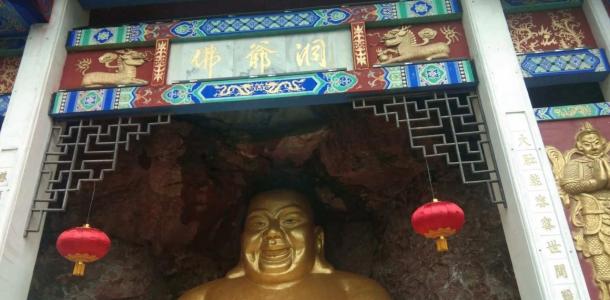 佛爷洞位于呼应山腰,洞口面向西北,海拔797米。1998年在洞口置一3米高的铜佛像,佛像伸出右手拂天,游人由铜佛袖口入洞,颇有妙趣。民国七年(公元1918年)前,洞内庭堂有两尊佛像,惟妙惟肖,生态盎然。