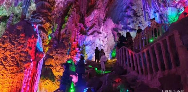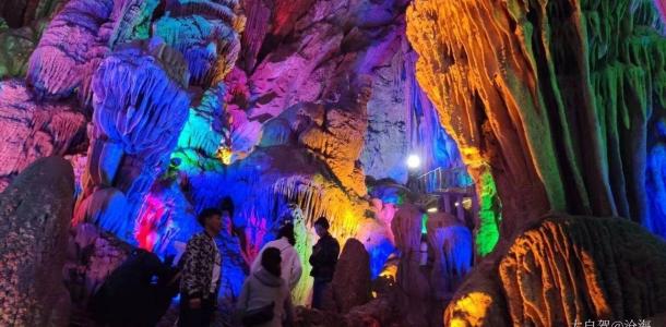 饱餐之后赴双龙溶洞景区参观,洞内亿万年滴水穿岩沉积的钟乳石筝:或如宝剑悬空、或如龙爪凸显、或如深海迷宫、或如浮雕一柱,目睹这些千奇百怪景象,真是让人惊叹大自然的鬼斧神工。