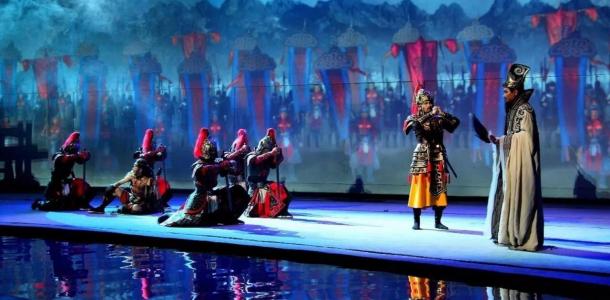 《出师表》以诸葛亮在汉中鞠躬尽瘁的历程为主线,通过科技加艺术手段联袂再现三国时期的经典故事,既有宏大的震撼视觉,也有细腻诗意的内心刻画,以电影式的手法塑造了一个全新的智圣孔明。全剧由序幕《夜观星象》、一幕《擒孟获