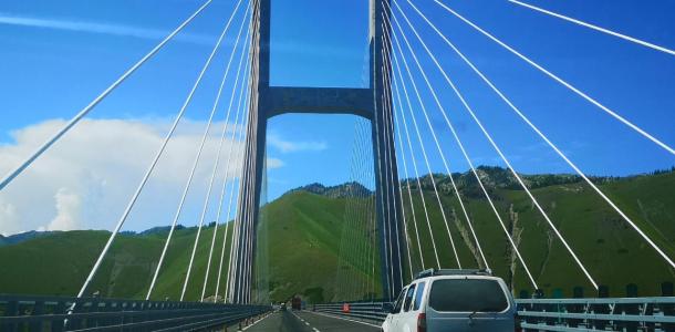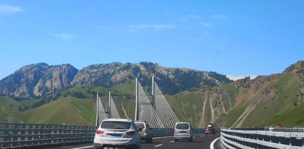 清晨行驶在果子沟大桥上,在这里司机师傅会贴心的放慢车速让您拍照,透过车窗拍摄大桥,内心也会不由得感动祖国工程力量的强大。