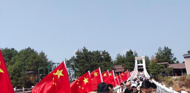 爬涉三宝洞、粽竹林,过长约183米高300长的高空玻璃索桥,体验红军当年“飞夺泸定桥”的惊险;