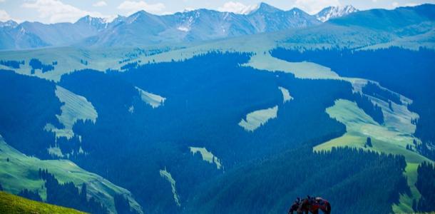 喀拉峻草原位于伊犁特克斯县东南侧,距离县城的车程约30公里,是新疆最著名的草原之一,也是游客游玩新疆西线(伊犁环线)时不能错过的著名景点。喀拉峻草原呈连绵的丘陵状,背靠巍峨雪山,草原上还有树林、花海等景观,景色辽阔秀