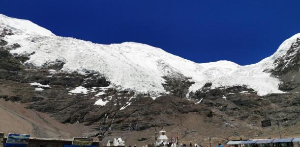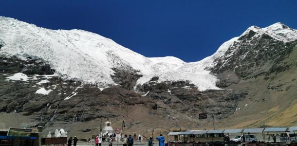 卡若拉冰川位于西藏山南地区浪卡子县和江孜县交界处,是西藏三大大陆型冰川之—,为年楚河东部源头。巨大的冰川从山顶云雾飘缈处,一直延伸到离公路只有几百米的路边,晶莹幽蓝中,捎来几许凉嗖嗖的感觉。由于先后有电影《红河谷
