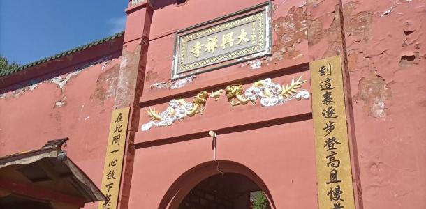 大兴禅寺位于嵩云山上,明末清初时修建,最初名为嵩云庵。清道光十七年庵焚毁殆尽。后洪江十馆和佛教信徒捐资建嵩云大兴禅寺。寺宇气势宏伟,流金溢彩,共三进:一进为韦陀殿,供奉关圣帝;二进为大雄宝殿,供奉如来佛;三进为祖
