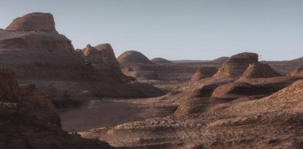 从G315拐入火星一号公路,自驾穿越火星一号公路,行驶几公里后,地面的雅丹群开始显现,一个个土丘成排成列,一头高而陡,一头低而缓,像海面上浮现出的鲸鱼的背脊,进入火星一号公路中雅丹群最核心的部分,各种形状的雅丹让人目不暇接
