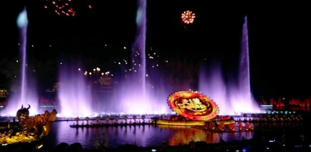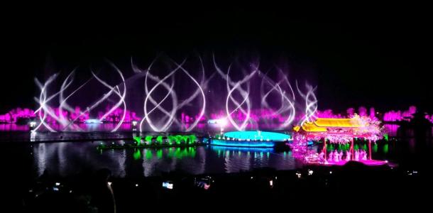 天汉传奇是一出大型演艺水上真人实景演出,通过水上投影、水中造型、水上表演、水上列阵、水中装置等一系列与水有关的创意和特效的形式,200多名演员在汉源湖水面上倾情表演,加之配合现代高科技的大型喷泉列阵、大型实景火效、激