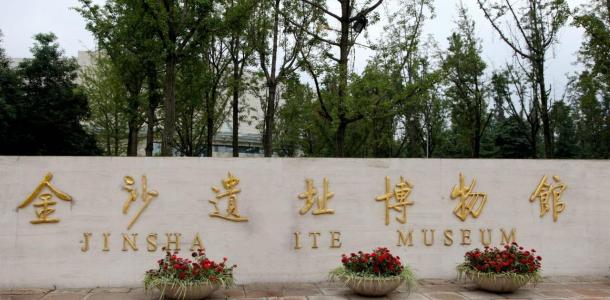 博物馆由陈列馆、遗迹馆、金沙剧场等建筑组成。从南大门进入后,首先映入眼帘的是一座大型雕塑“中国文化遗产纪念雕塑”,雕塑外形就是源于出土的那件“太阳神鸟”黄金饰品。陈列馆分为五个展厅和一个4D电影院。集中展示了金沙遗址