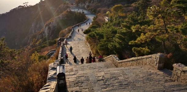 十八盘是泰山登山盘路中最险要的一段,也是泰山的主要标志之一,更是泰山最值的一走的景点。从对松山谷底至南天门的山路统称为“十八盘”,共有1600多级台阶。前393级称慢十八盘;中767级为不紧不慢十八盘;后473级为紧十八盘。当地有