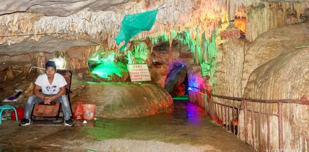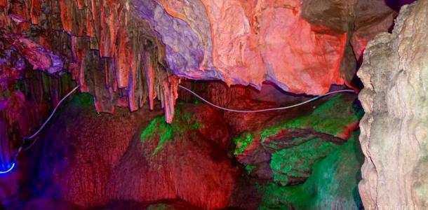仙人洞位于仙人洞村以北,坐船进入溶洞,洞内空间狭小,有的地方甚至还要侧身而过,洞内的清凉扑面而来。如刀似剑的钟乳石从洞顶倒悬下来,仿佛一个收藏丰富的古兵器库。沿着1公里左右的步道前行,其中“双龙夺宝”、“万里长城”