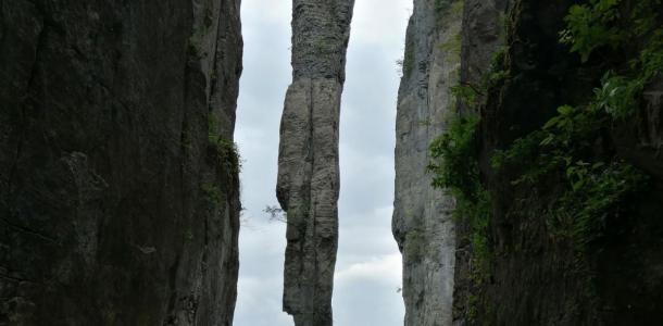 七星寨是恩施大峡谷的核心景区。有两处绝妙景点,一是凌空架于石壁上的悬空栈道绝壁长廊,走在上面,令人胆战心惊,有恐高症、心脏病或高血压的千万慎入!另一处是大峡谷的最核心景点一炷香,与三清山的巨蟒出山有相似之处。还有