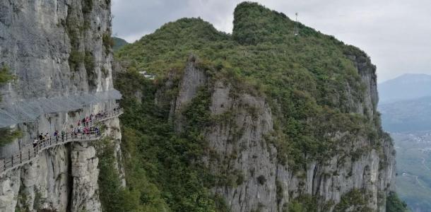 中餐后游览地球上最美丽的伤痕【云龙地缝】(游览约1.5小时),这条地缝形成于2.1-2.9亿年间世界上极为罕见的“U”字形段崖,这是世界上唯一两岸不同地质年代的地缝。右岸为1.8-2.3亿年前形成的三迭纪地层,左岸是2.5-2.8亿年前形成的二迭纪地层。该景观带构成了集水蚀峡谷、溶岩洞穴、绝壁峰丛、天坑地缝、瀑布跌水为一体的水文地质大观,加之独具特色的土家民居,景观丰富多样。