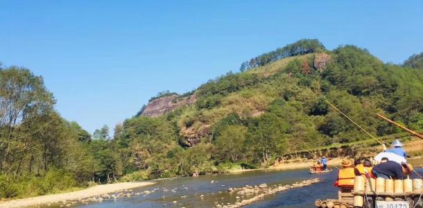 九曲溪竹筏漂流因水绕山行折成九曲而得名,是武夷山的精华所在。漂流一般是从九曲到一曲顺流而下,这样随波而下,更加轻快、迅疾。游九曲,所乘之舟为去皮毛竹烤后扎成。吃水浅、浮力大,游人乘坐安稳舒适,视野开阔。