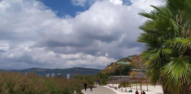 月亮湾湿地公园与抚仙湖悦椿度假酒店相邻,与抚仙湖零距离,适宜散步观景。最南侧湖畔有一片开阔的椰林树影沙滩,仿佛置身于真正的阳光海岸。公园通过一条以古化石图片、文字介绍装点的地下通道与悦椿酒店相连,并对酒店住客免费