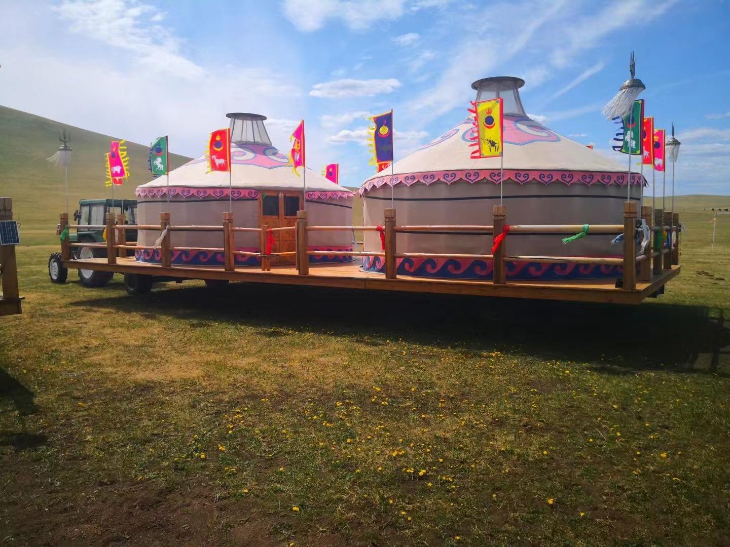 乘坐“行军大帐”,一路走向草原深处,途中有蒙古马头琴演奏,感受成吉思汗出征时的气势辉宏。