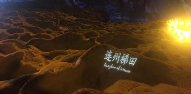 下午游览连州地下河景区-洞内有无数千姿百态,瑰丽多彩的钟乳石,游览范围共分三层:上中两层为陆地层,厅堂高大宽阔,岩壁坚固,雄伟壮观;下层是一条地下暗河,由北向南蜿蜒1500米,经过三个美丽的峡谷,穿过四座山头底部,河面宽1.6米,水深1-7米,两岸奇景密布,巧夺天工,美不胜收。