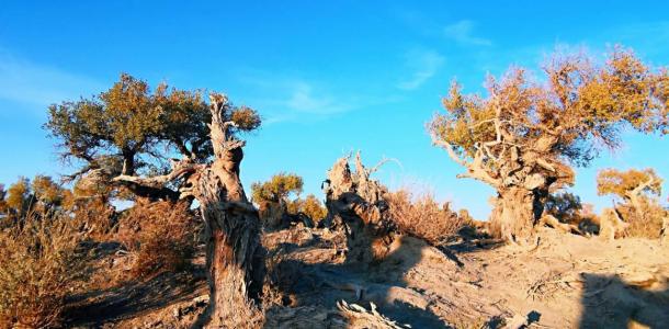 下午抵达伊吾原始胡杨林景区,自驾进入景区,参观一路上千姿百态的胡杨林。