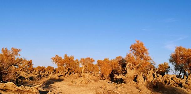早饭后乘车出发,前往伊吾原始胡杨林。