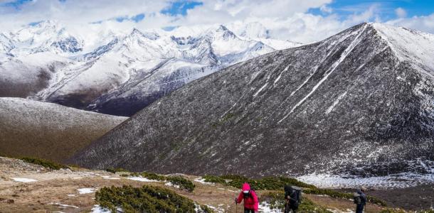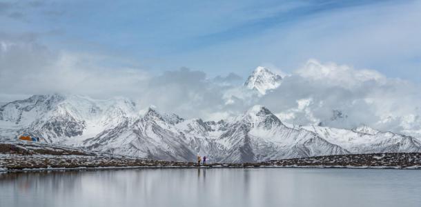 一路前行,中午左右抵达帮木吉德村,休整后开始徒步前往冷噶措,徒步时间2-3小时左右(速度快的1.5小时左右便可到达,也可以骑马 1小时左右)便可以到达冷噶措,(对面的贡嘎雪山清晰可见)(这里海拔4500米,不建议剧烈运动);