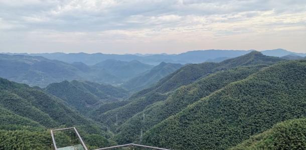 这里被誉为“四明山最美观景台”之一,这座观景平台挨着山崖而建,由钢构和厚玻璃制作而成,共有三层,第一层的外延由玻璃铺设而成,