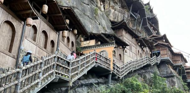 【寻仙路】我们现在走的这条栈道叫寻仙路,既有青石板路,也有峡谷栈道,顺应天然的地形,曲折回转,蜿蜒在九牛峡谷之中。山里的步道从古至今用的都是这种很粗糙的毛石,具有防滑的作用,这也是我们古代工匠智慧的体现。栈道沿途鸟声啾啾,水声潺潺,四时之景也各有不同。