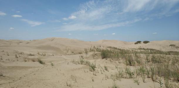 达瓦昆沙漠风景区有面积2万多亩的天然流动湖泊水面,有200万沙漠环绕湖泊,可谓沙水相依,碧波荡漾.新建的欧式风情别墅,极具维吾尔族风情的毡房和民族风情园点缀湖畔.夏日里,湖光潋滟,烟波浩渺的湖面上船影点点,游艇的马达声与游客