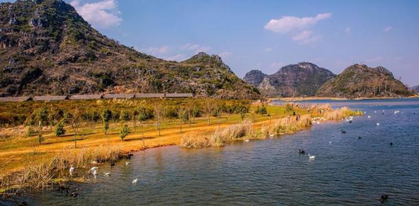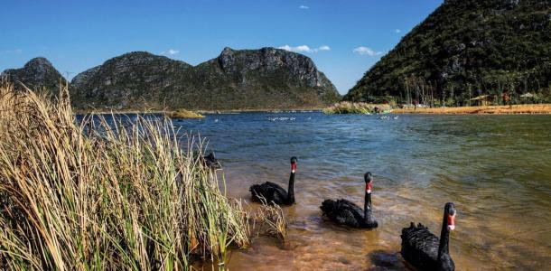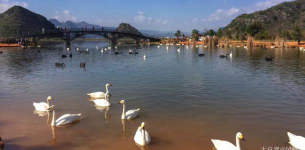 天鹅湖位于文山市丘北县普者黑风景区内,是一个集喀斯特孤峰群、湖泊群、溶洞群、湿地生态群为一体的生态型湖区。湖区内湿地生物非常丰富,仅候鸟就有大雁、天鹅、苍鹭、白鹭、钳嘴鹳等一百多种1万多只。在这里游客可以选择漫步或