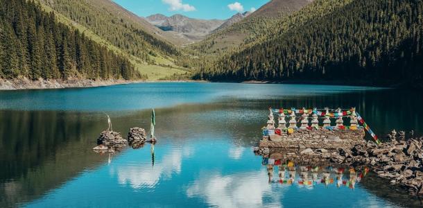 情人海,又名李西神湖、长海子,藏名“撒尔脚措”。挺拔的云杉、柏树环抱着碧蓝的湖水,像一面镜子平铺在山谷间,湖光山色相映成趣;岸边不远处点缀着藏民红色的木屋,仿佛一座北欧小镇,朴实无华宁静纯粹,它绝对是整个金川县最