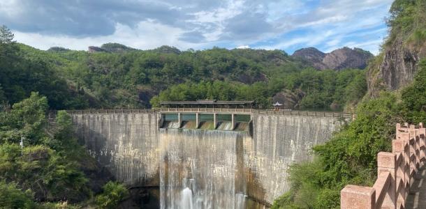 石门湖位于连城冠豸山东南,两岸是满眼青葱的高山,湖水光滑如镜犹如一块镶嵌在冠豸山险峰奇谷之间的翡翠,水随着山势蜿蜒流淌,碧水青山交相辉映,荡舟其中好比置身山水画间,无处不在的清幽、碧绿让人倍感放松。