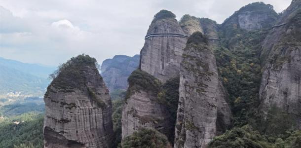 南武当山景区位于江西省赣州龙南县武当镇境内,雄跨赣粤交界,主峰海拔864米,是以丹霞风光和佛教文化为一体的风景名胜区。南武当山景区为典型的丹霞地貌,以丹霞峰丛、峰林地貌景观为特色,九十九座丹霞奇峰平地突兀,群岩涌秀,孤峰挺拔林立,形如利剑,直指天穹。一座座千姿百态的山峰,构成一幅壮美的山水画卷,有“十里画廊”的美誉,沿着105国道徐徐展开。