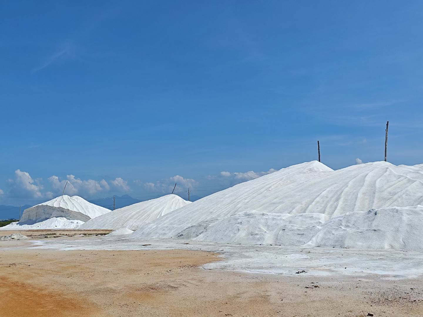 在莺歌海盐场内还可参观到非常有趣的制盐工序,一般下午时分是比较好的时间点,届时可以看到盐工先将铲起的盐花捣碎,再把盐粒堆成一座座小盐山。产盐的旺季在每年5、6月份左右,那时候整个盐厂堆满了盐山,一片雪白,极其壮观。