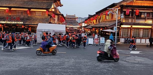 后景区内合影留念后享用晚餐。