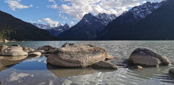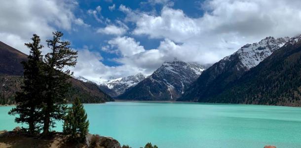 第二站:新路海,从德格印经院出来前往新路海,这是甘孜州著名的冰蚀湖,水源是由雀儿山冰川和积雪消融而来。一面是高耸入云的雪峰,一面是牧草丰茂的错巴村牧场。湖泊周围高原云杉、冷杉、柏树、杜鹃树和草荀环绕,此情此景犹如画中仙境,所以它也有着“九天瑶池”的美誉。