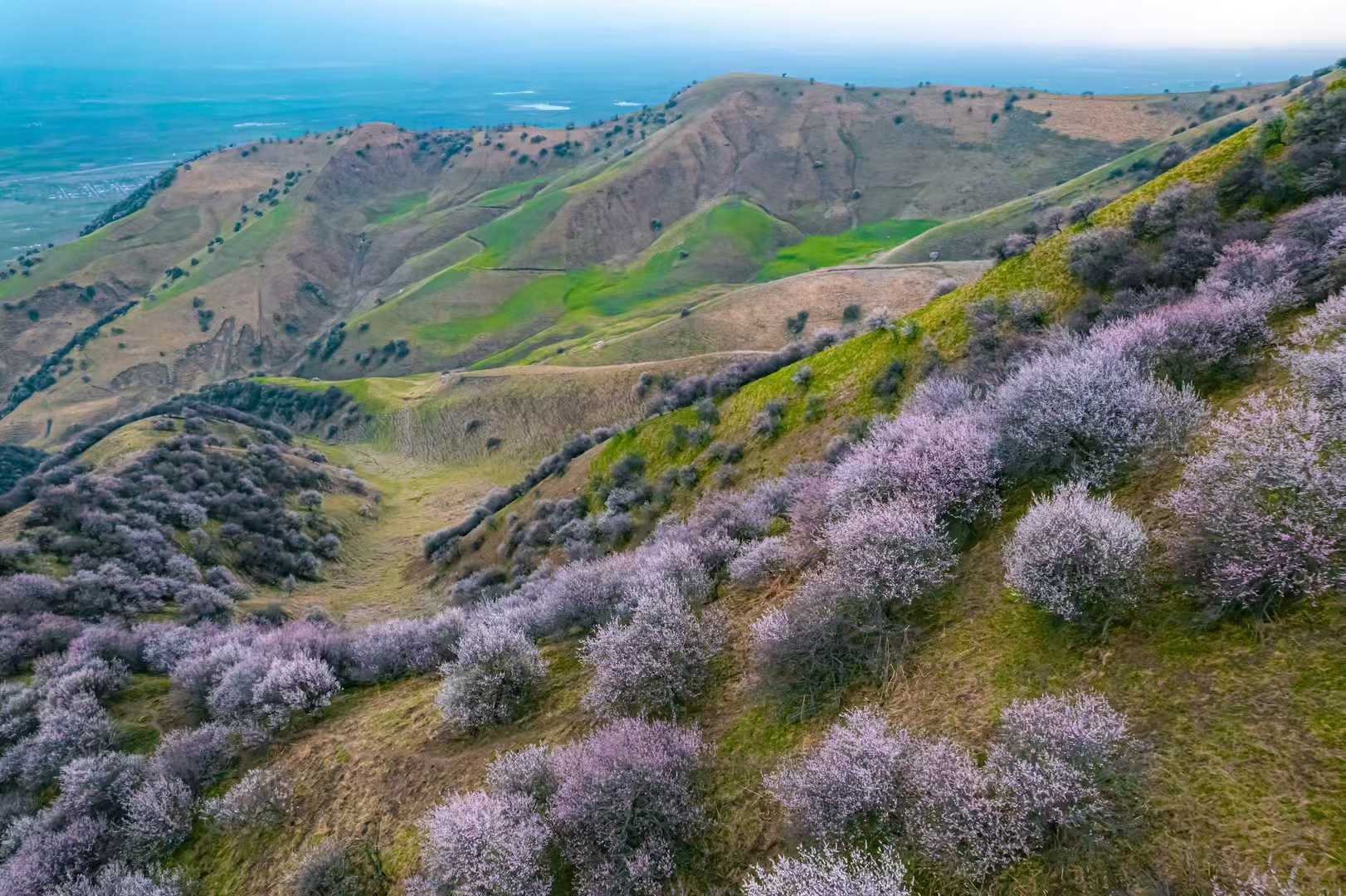 第一站:清晨从特克斯出发前往著名的吐尔根杏花沟,在这里你将领略到新疆最为浓烈的春,吐尔根杏花并非人工培育而成的,它是一片中世纪遗留下最大的原始野杏林,占地有3万余亩,是中世纪遗留最大的原始野杏林。