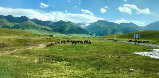 伊犁巩乃斯,蒙语意为“太阳坡”分布在伊犁新源境内,是新疆细毛羊的故乡,也是“天马---伊犁马”的有名产地。新源县,位于新疆西部天山北麓的伊犁河谷东端,距伊宁市196km,巩乃斯草原四季景色俱佳,6月哈萨克牧民从“冬窝子”转场而来,盛装的少女,骠悍的骑手,为大草原增添了盎然生机。