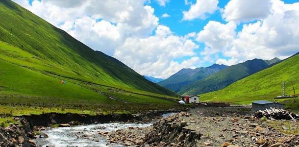 玉科草原位于四川甘孜州道孚县境内,距县城65千米,融蓝天、白云、雪山、林木、草原、溪流为一体,被誉为“康巴阿勒泰”。玉科草原面积大而平坦,间以森林,十分迷人,是极为罕见的天然画卷。号称“高原花园”的玉科草原上,矗立着
